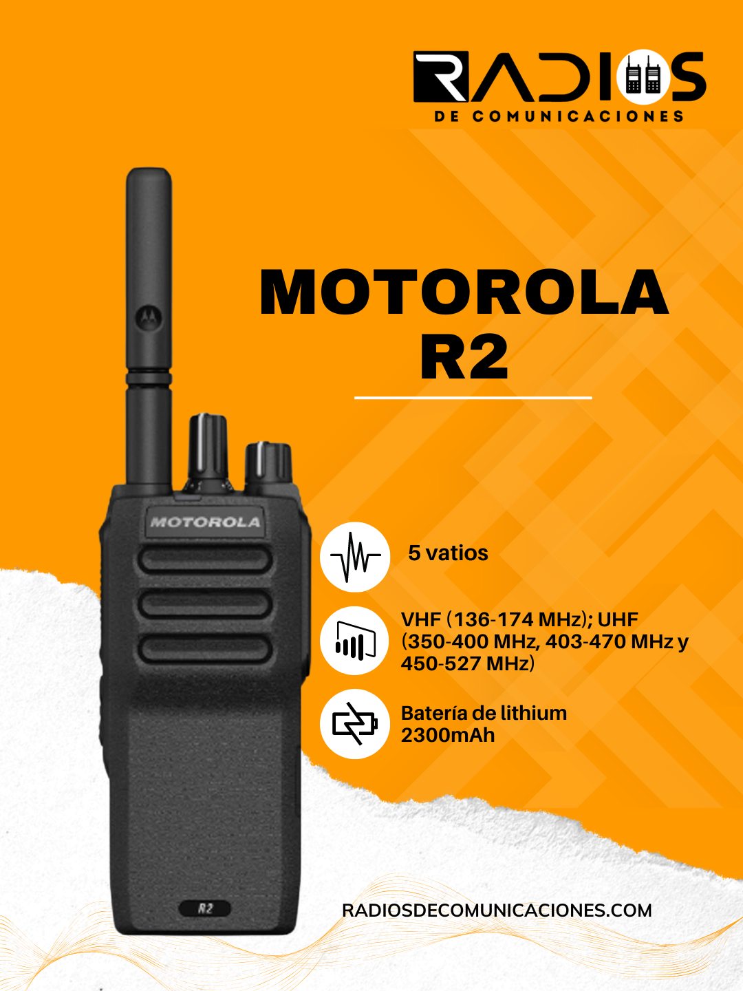 El MOTOTRBO R2 combina durabilidad y ergonomía para garantizar un manejo seguro y fácil. Y con un rango superior, audio configurable e integración perfecta, el R2 es una adición confiable para un día de trabajo ininterrumpido. La radio R2 está programada para eventualmente reemplazar la línea de radios Motorola CP200D que han sido los más vendidos durante muchos años.