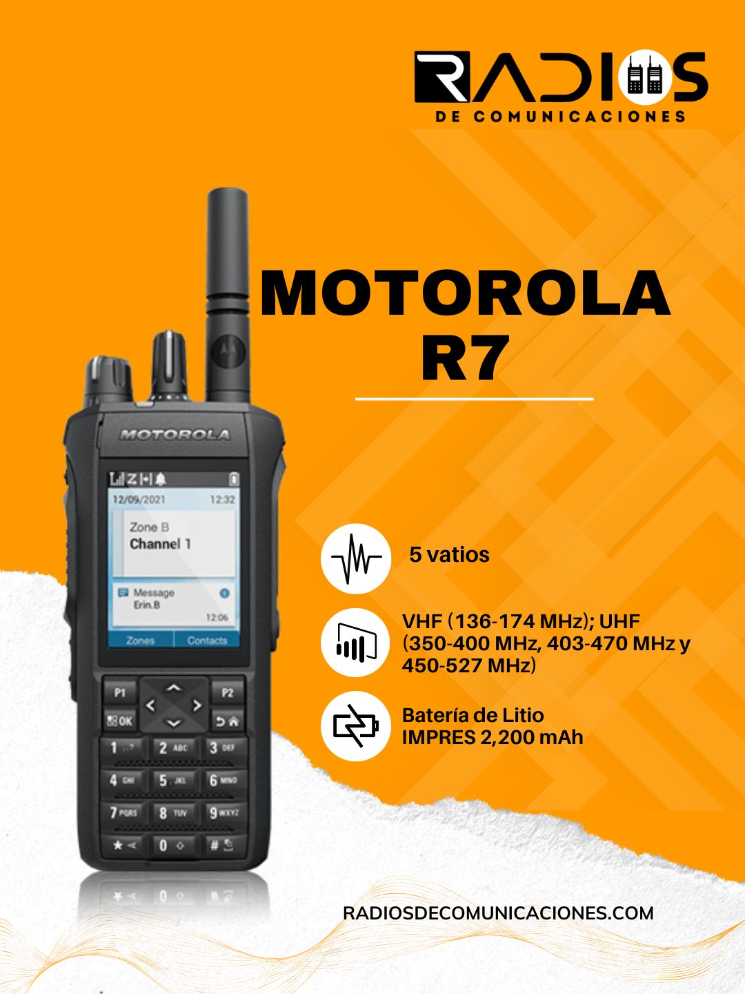 MOTOTRBO R7 ofrece capacidades de audio revolucionarias en un dispositivo con grandes características. Su procesamiento de audio avanzado garantiza comunicaciones fuertes y claras, su diseño robusto está preparado para entornos difíciles, y las opciones avanzadas de conectividad preparan a su personal al futuro. Algunas de sus capacidades especiales: Proporciona un nivel superior de cancelación de ruido, volumen y claridad. Pueden escuchar y ser escuchados a la primera con la Supresión de Ruido y Micrófono Doble Adaptable, ya sea activando la cancelación de ruido al bullicio, a maquinarias pesadas o cancelando el ruido de un aeropuerto.