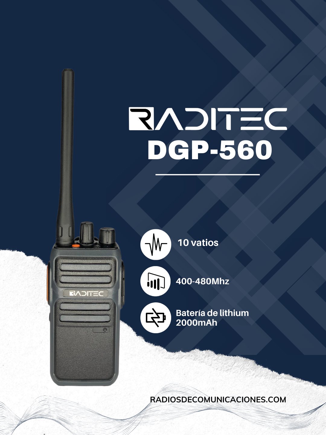 Radio de 16 canales análogo de 10 vatios, bidireccional con funciones de Codificador de 8 grupos, Comparador de voz, Radio FM incorporada, Temporizador de tiempo de espera, Transmisión por voz manos libres (VOX), Conmutable de alta / baja potencia, Anuncio de voz, Codificación y descodificación DTMF, Función de espectro ensanchado por salto de frecuencia